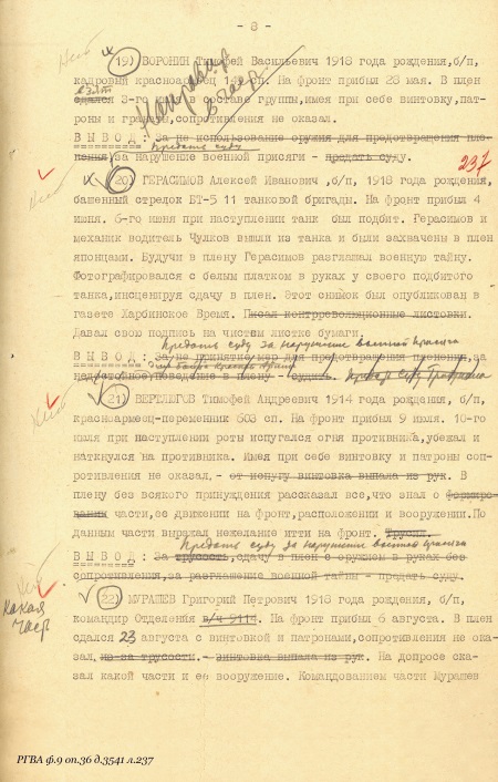 The present research is based mostly on archival materials – after-action written explanations and statements of the former prisoners of war, the investigation materials prepared by GUGB NKVD, sentences of military tribunals, documents produced by military prosecution and high-ranking military and political officers.