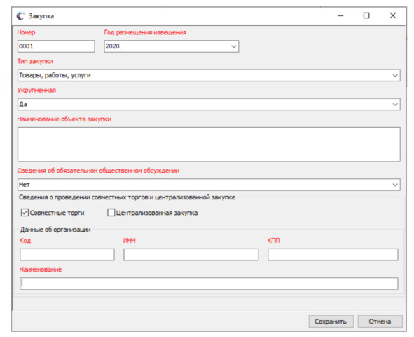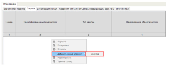 Сформируйте позиции плана через раздел «Закупки». Для каждого заказа создайте новый элемент.