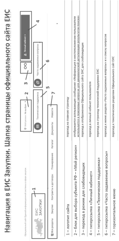 Навигация в ЕИС Закупки. Шапка страницы официального сайта ЕИС