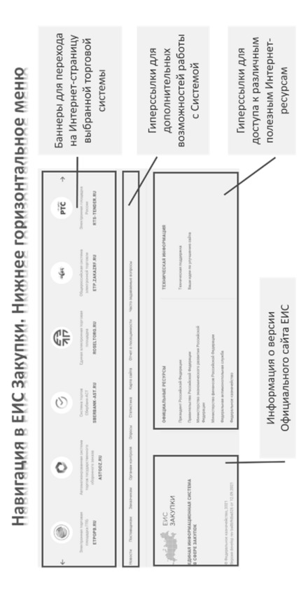 Навигация в ЕИС Закупки. Нижнее горизонтальное меню