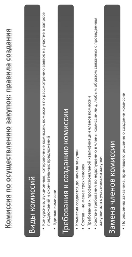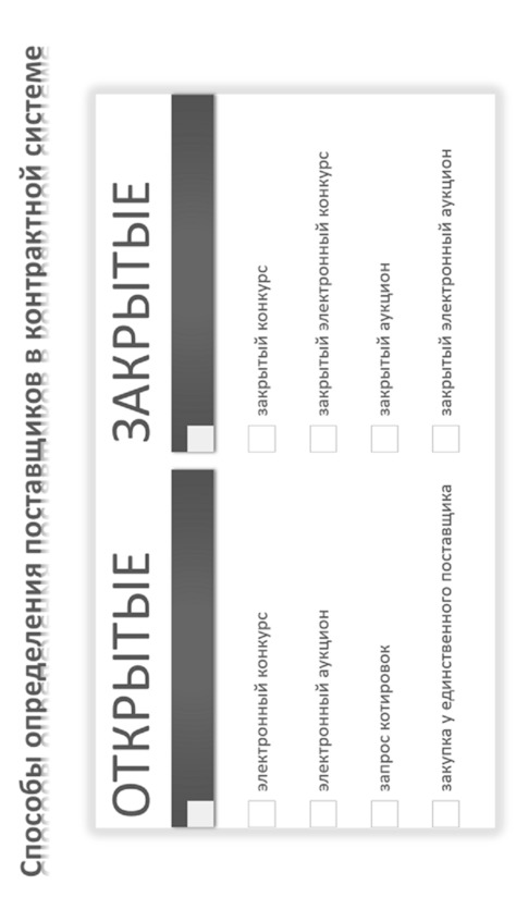 Опираясь на эти схемы, преподаватель сможет прочитать лекционный курс, а слушатели получат наглядные представления о ключевых моментах процесса госзакупок.