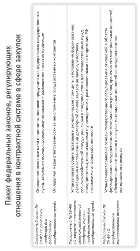 Пакет федеральных законов, регулирующих отношения в контрактной системе в сфере закупок