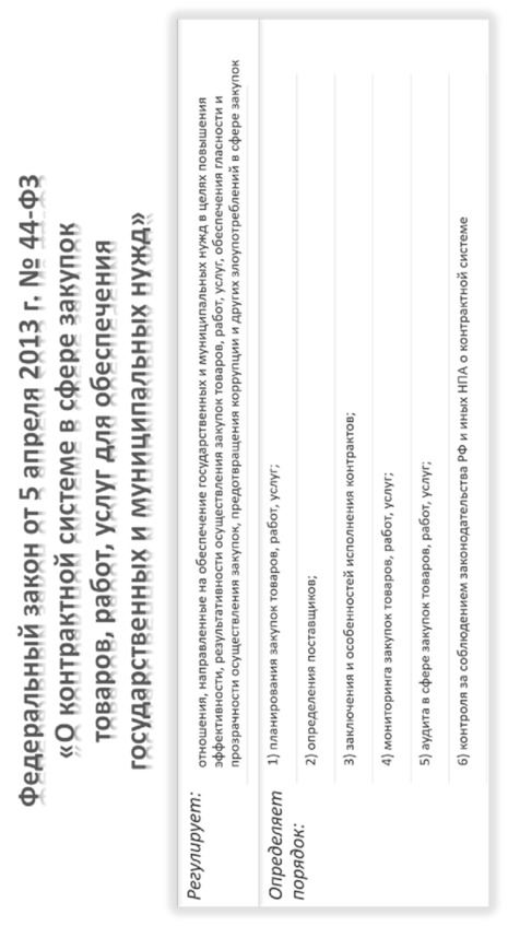 Федеральный закон от 5 апреля 2013 г. №44-ФЗ «О контрактной системе в сфере закупок товаров, работ, услуг для обеспечения государственных и муниципальных нужд»