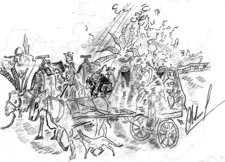 …Взвалив мешки на спину, Аль-Мажнун побрел вдоль тенистых акаций по дороге, ведущей в город.