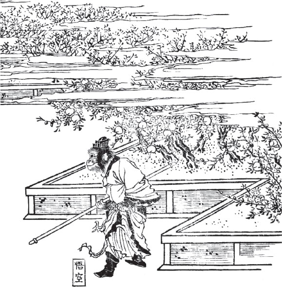 Сунь Укун сложил перед собой приветственно руки и ответил: «Ваши слова, уважаемый, как нельзя более своевременны». Тут он превратился в бабочку, влетел в ворота и стал порхать в воздухе, как прелестная танцовщица или чарующие звуки лютни.