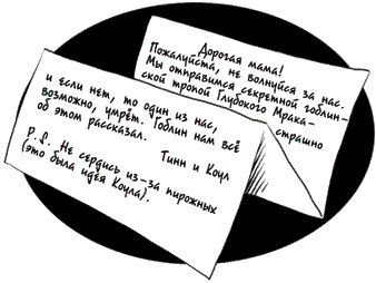 По всему столу были рассыпаны крошки от пирожных. И ещё лежала записка. Энни выпрямилась. Она подняла маленький листок бумаги и прочитала его. Это был почерк Тинна – обычно более аккуратный, чем у Коула, – но он подписался за них обоих.