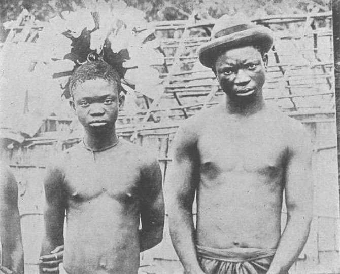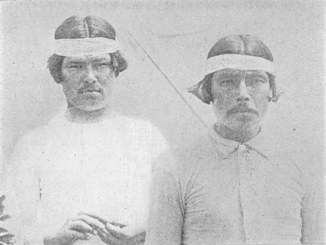 Зрение этой первобытной пары и перечисленных далее групп первобытных людей было проверено на Всемирной выставке в Сент-Луисе и оказалось нормальным. Однако из-за того, что эти люди не привыкли фотографироваться, мы видим, что они были настолько взволнованы, что, возможно, перед объективом фотокамеры все они стали миопиками (см. Главу IX).