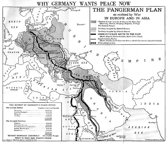 Начиная с 1890-х годов Германия приняла решение войти в мощный экономический союз с Турцией для развития потенциально огромных новых рынков на Востоке для экспорта немецких промышленных товаров. Железнодорожный проект Берлин-Багдад должен был стать ядром блестящей и вполне работоспособной экономической стратегии. На заднем фоне просматривались потенциальные поставки нефти, и Британия выступила против. Семена вражды, трагически взошедшие на Ближнем Востоке в 1990-е годы, являются прямыми последствиями того периода.