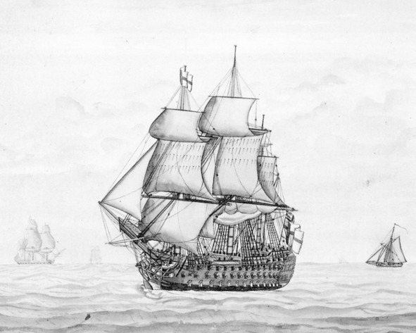 90-пушечный линейный корабль «Сэндвич». Рисунок неизвестного художника конца XVIII века
