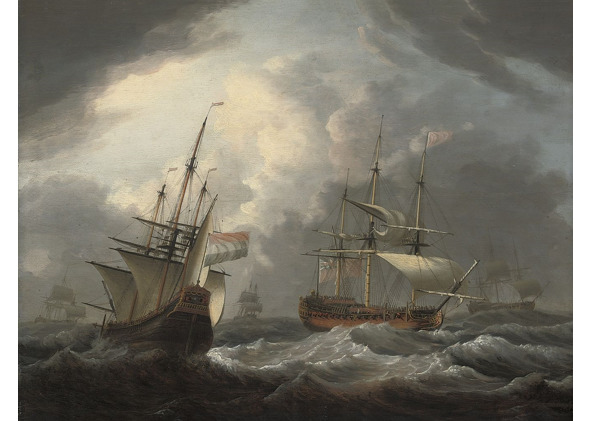 Голландское судно и британский фрегат. Картина художника Доминика Серреса