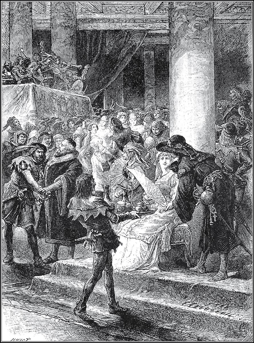 Эй вы, побольше света! Прочь столы!Камин гасите: стало слишком жарко.Как кстати нам нежданная забава!(Старику, своему родственнику.)