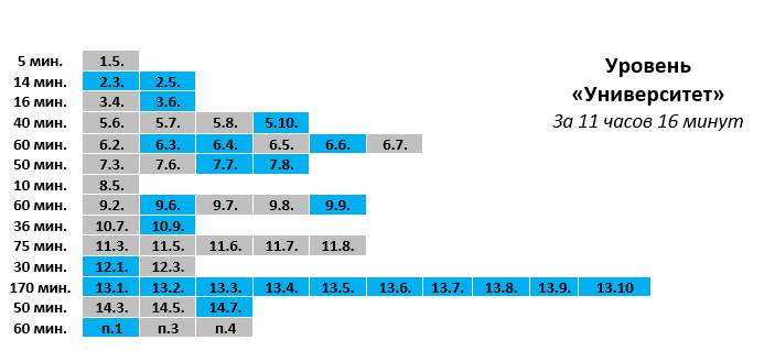 Программа курса «Университет» рассчитана на тех, кто серьезно интересуется фондовым рынком. Ориентировочное время для изучения – 11 часов. Особое внимание уделено оценке качества управления, правилам самостоятельного инвестирования и факторам, от которых зависит курсовая стоимость акций.