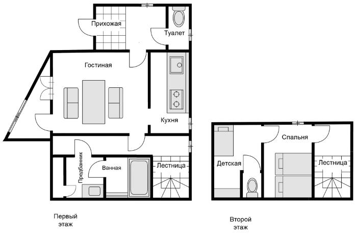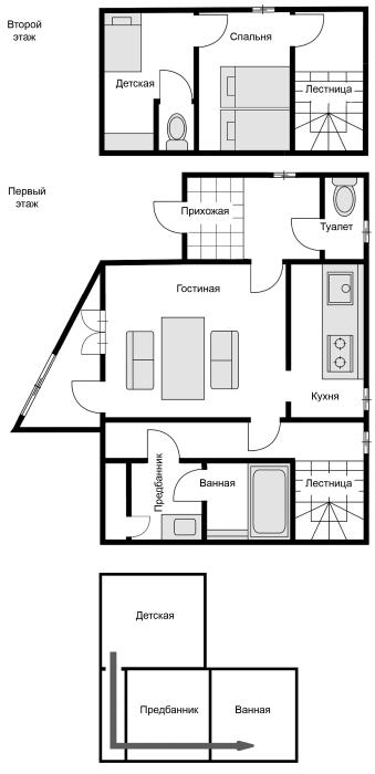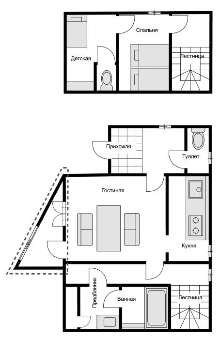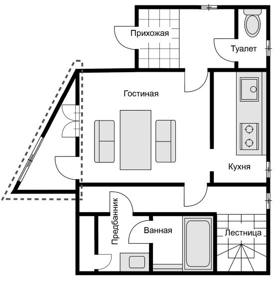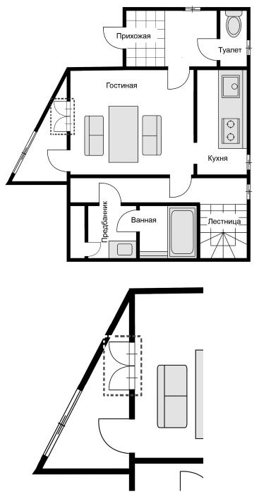 Прихожая, туалет, гостиная, а рядом с ней – треугольная комната. Интересно, для чего она нужна?