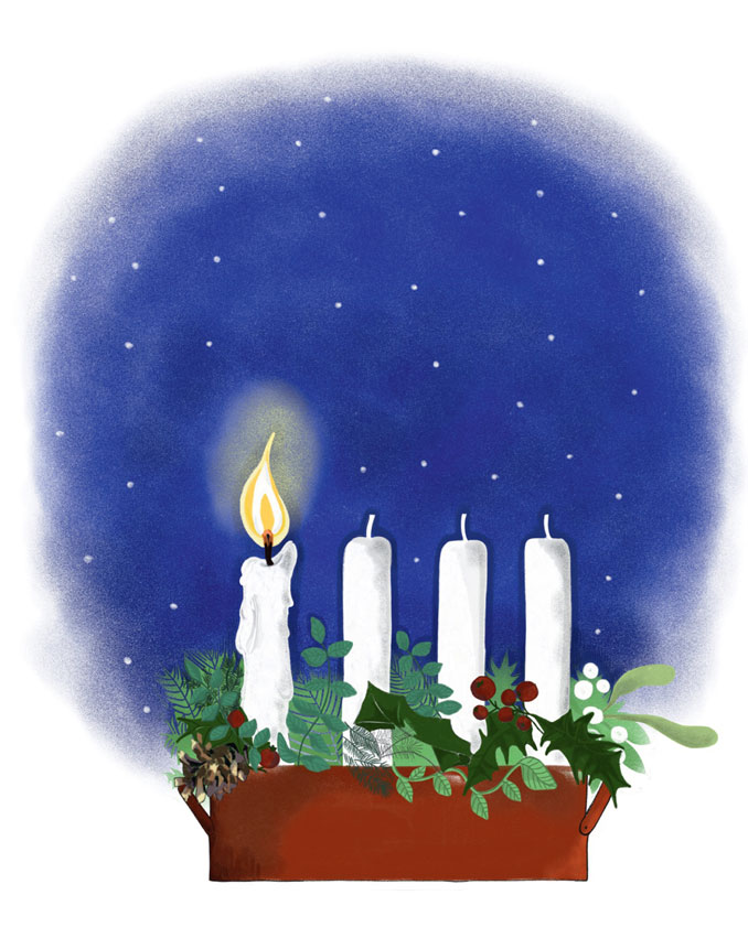 Адвент (от латинского «пришествие») – предрождественский период у католиков и протестантов. Верующие вспоминают события Нового и Ветхого Завета, совершают дела милосердия. В каждое из четырёх воскресений адвента зажигают по одной свече на специальной подставке и готовятся к празднику. Прим. пер.