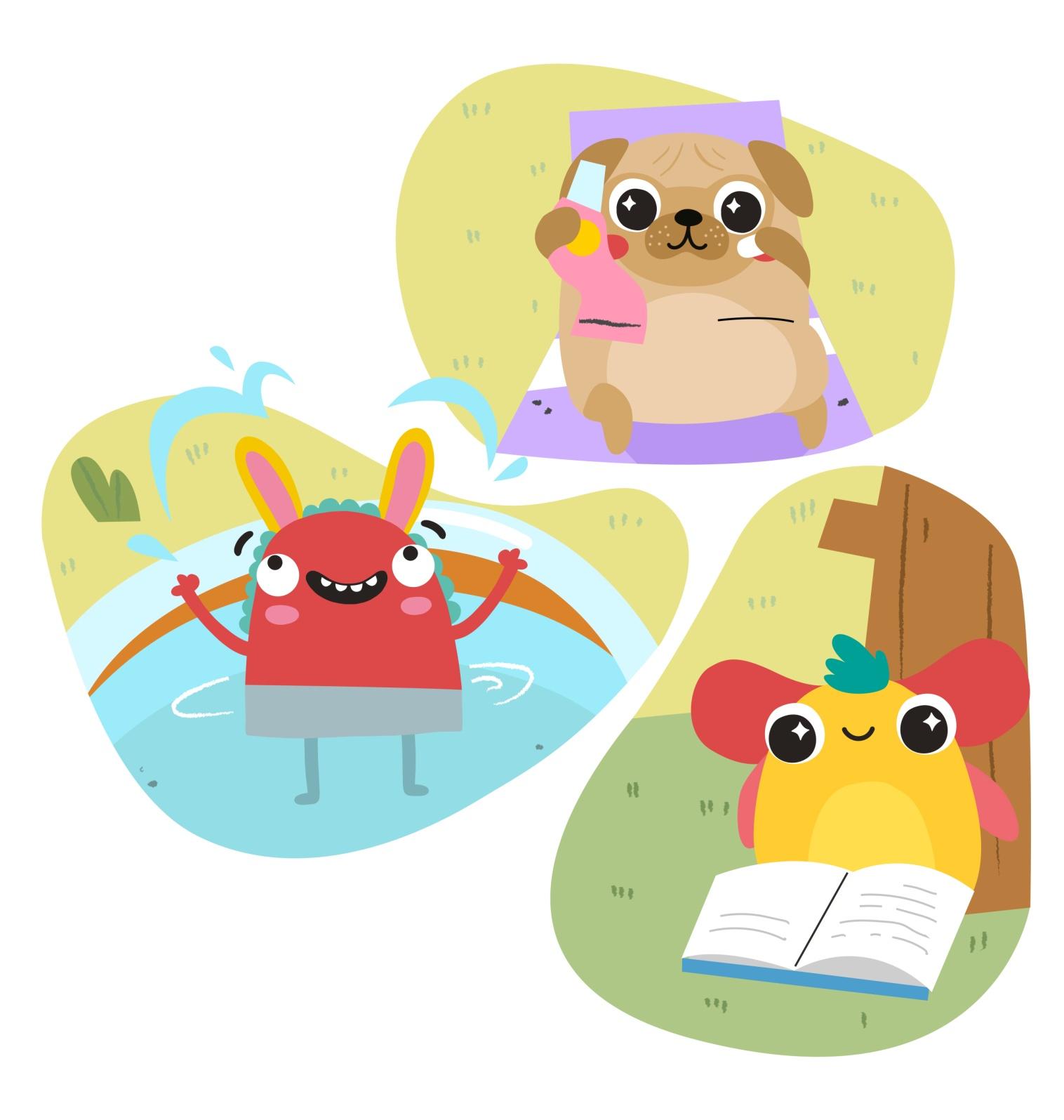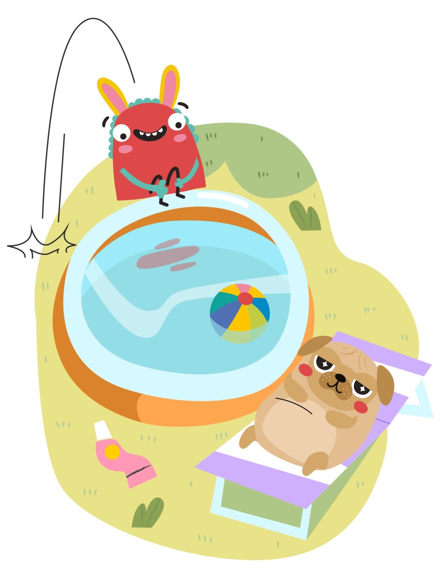 – Приглашу своих друзей: Страшилку и мопсика Мо. Будем купаться в бассейне и прохлаждаться в тени деревьев. А ещё приготовлю полезные напитки, ведь в такую жару обязательно нужно побольше пить, – решил Ромми.