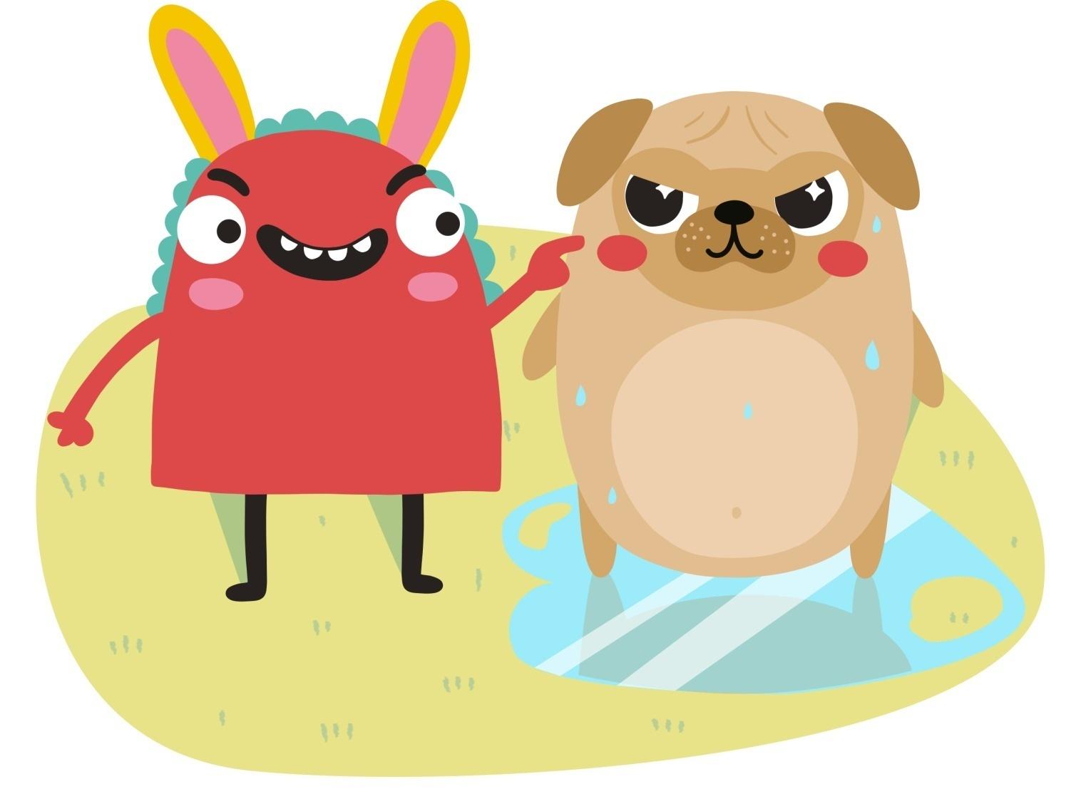 Страшилка и Мо стали наперебой жаловаться Ромми друг на друга. По словам мопсика выходило, что Страшилка, как какой-то бандит, специально облил Мо страшно ледяной водой. А Страшилка уверял, что он вообще ни при чём, что он играл в водолаза, а Мо накричал на него без причины, и что вода, между прочим, теплая.