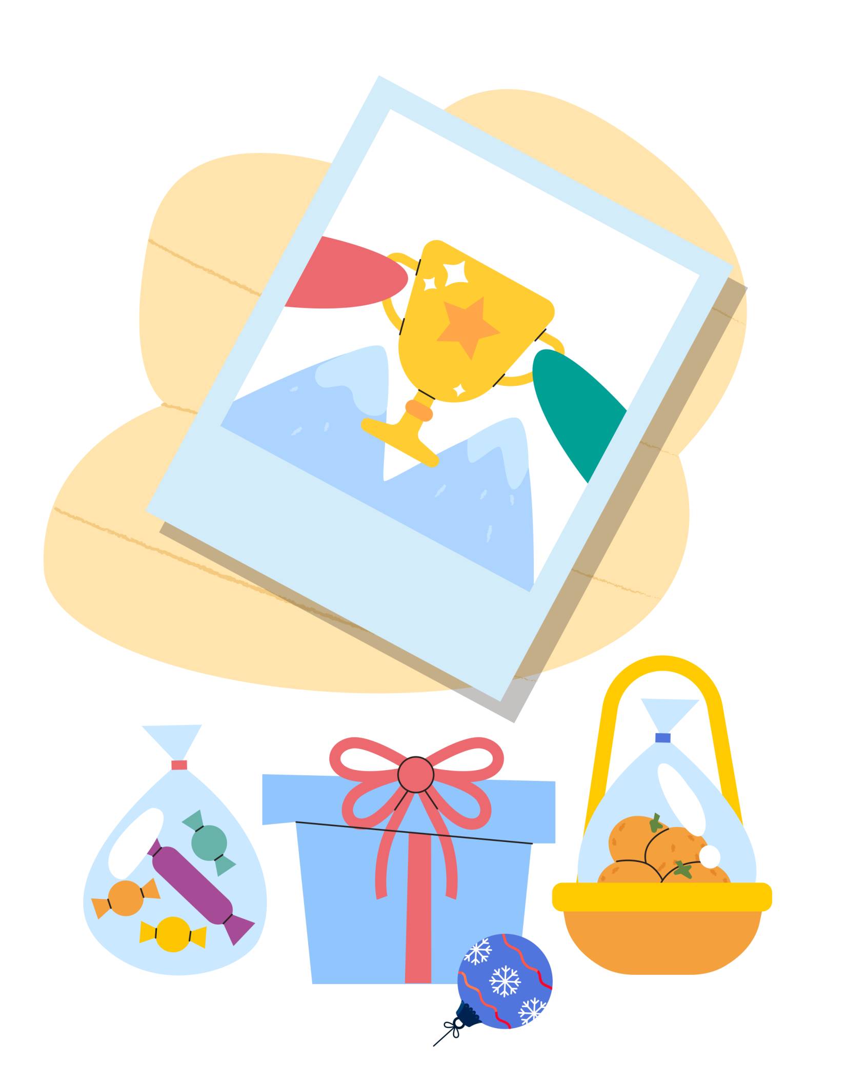 За третье место можно было получить корзинку ароматных мандаринов. За второе – большой кулёк разнообразных конфет.
