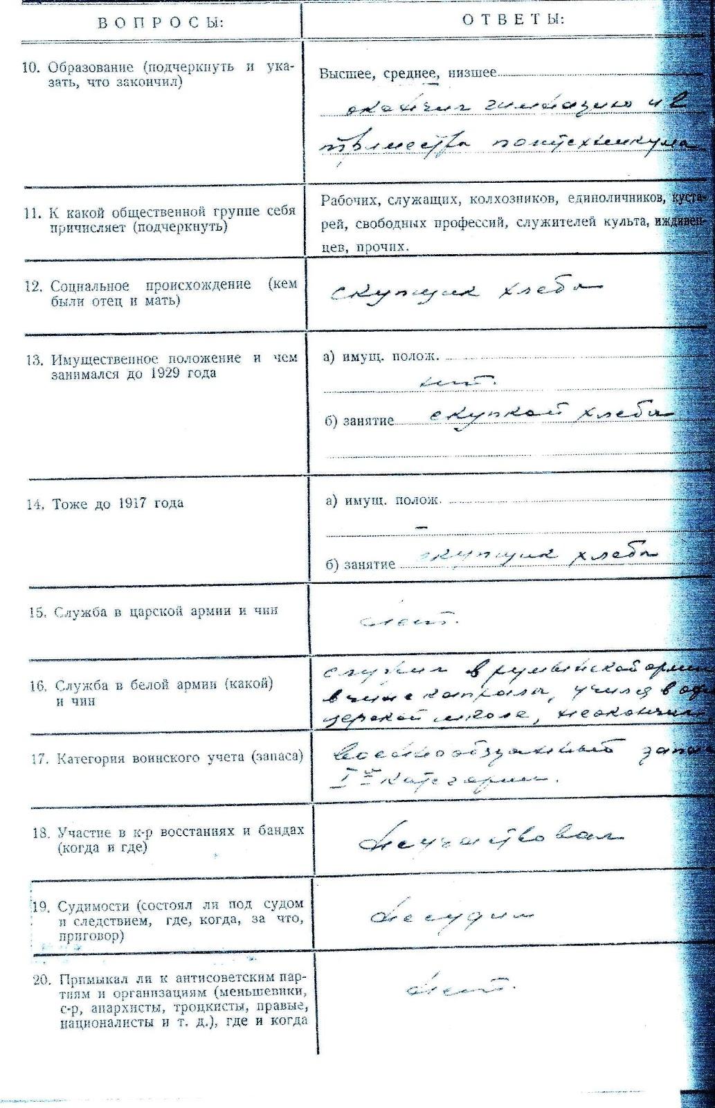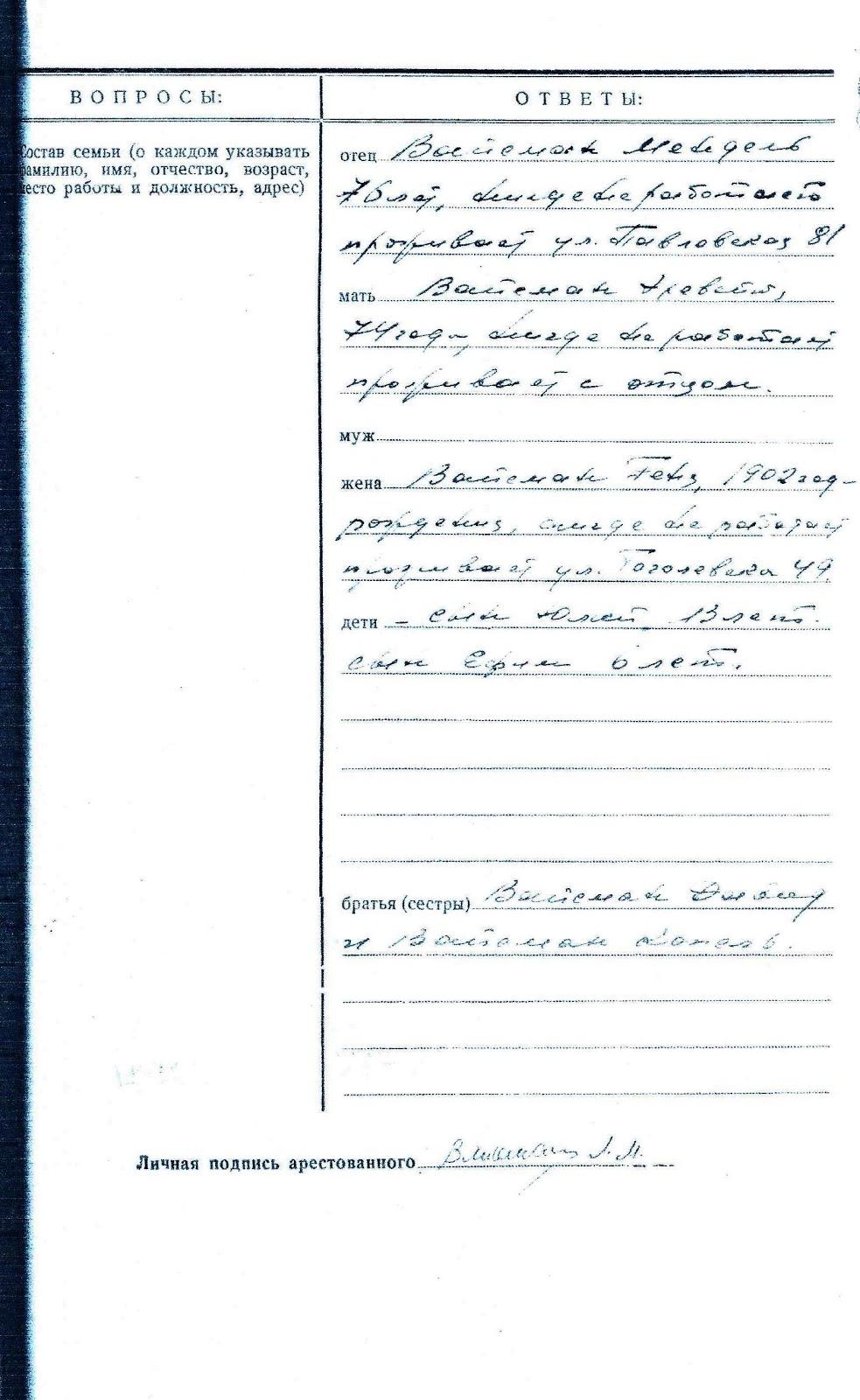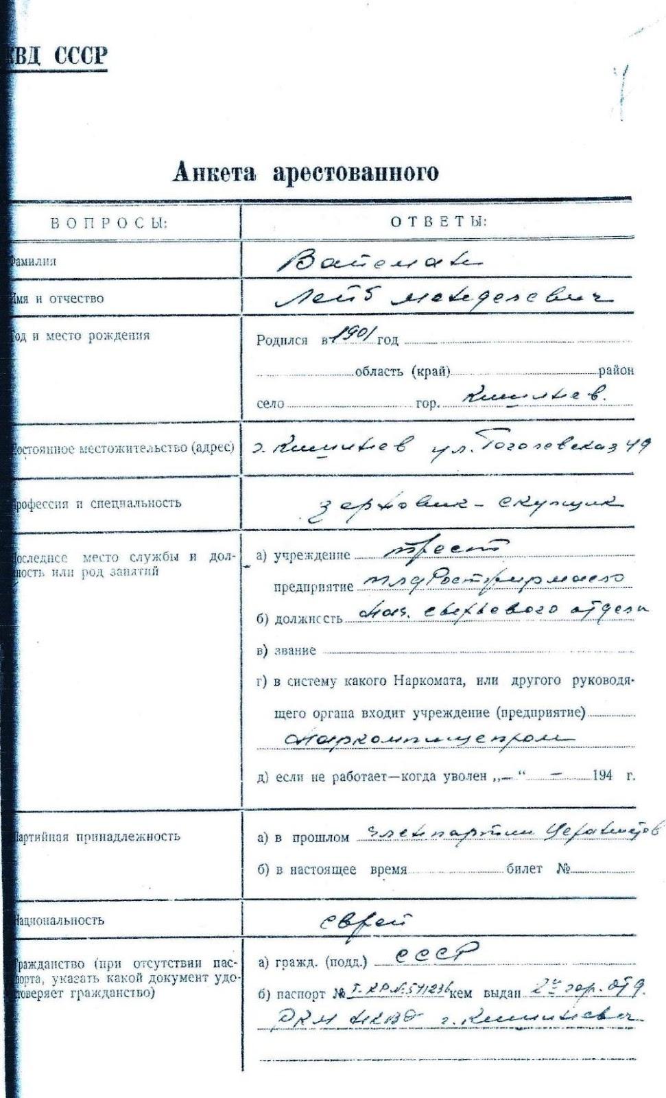 Кроме приведенных выше документов в деле находилась анкета арестованного