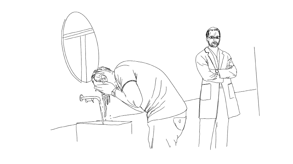 Мой первый пациент, наверное, он мне запомнится надолго, довольно-таки ярко и красочно ворвался в кабинет Николая Александровича, где мы сидели вместе с моим коллегой и вкушали всю информацию о вводных психиатрических данных. Резко открывается дверь, и в проёме оказывается молодой человек на вид лет 19–20, с всклокоченными волосами, с абсолютно непонимающими глазами. Он резко заходит в кабинет. Подходит к умывальнику. Открывает два крана. Из крана начинает литься вода бешеным потоком. Он начинает активно умываться. При этом мы с коллегой сидим просто в полном шоке. Я перевожу глаза на Николая Александровича, он сидит с абсолютно невозмутимым лицом. Это дало какое-то успокоение, что в принципе, наверное, происходит что-то в рамках разумного. Молодой человек начинает активно умываться, разбрызгивая воду вокруг себя на зеркало, которое висит перед умывальником, со словами: «Ой, б**, ой, б**, вот это да, вот это да. Вот это я, да, вот это я». Ну и, собственно, умываясь и периодически посматривая в зеркало, он продолжал банные процедуры.