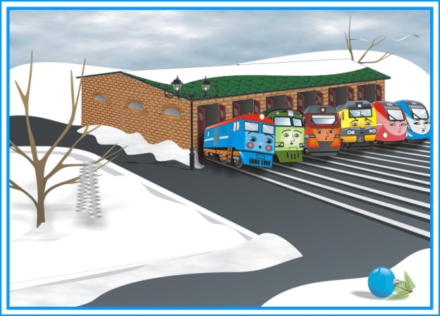 Как не старался, Лучик не мог сдвинуться с места и освободиться от этой досадной помехи! Паровозики очень замерзли и почти отчаялись! Настроение было совсем не праздничное.