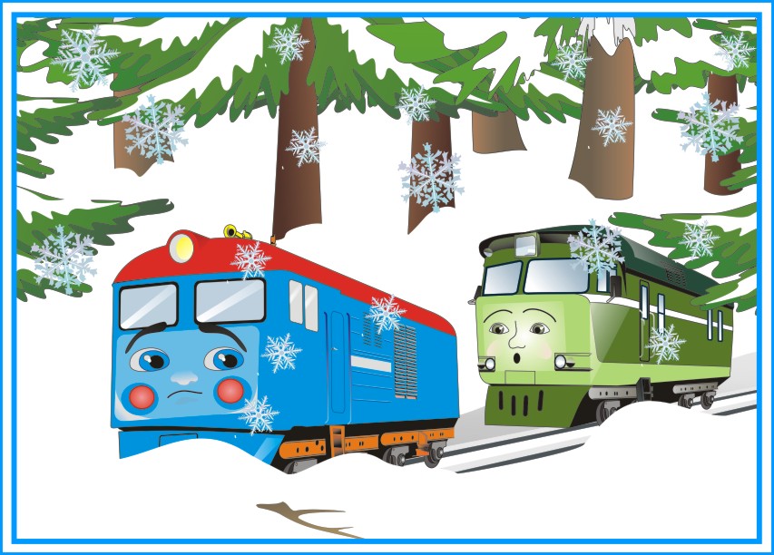 И они поехали прямо. Ехали, ехали, а пейзаж всё тот же. Справа и слева лес непроглядный. А снега всё больше, а ёлки всё выше! Очень скоро они заблудились. Позёмка слепила глаза. Верхушки вековых елей качались от ветра. Снег, так и падал комьями на крыши паровозиков. Было очень страшно! Что делать? Возвращаться обратно к развилке? Вдруг, Лучик подпрыгнул и резко остановился. Под снегом ничего не было видно, но он почувствовал, как колёсо заклинило.