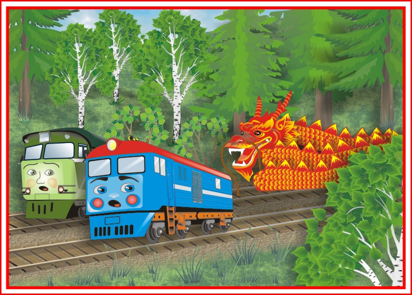 – Там, в лесу, дракон! – запыхавшись, протараторили напуганные паровозики.