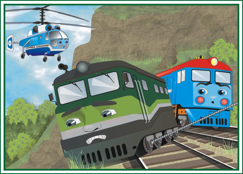 Паровозики облегчённо вздохнули. Казалось бы, всё самое страшное осталось позади, но не тут-то было! Они услышали тревожный гудок и посмотрели наверх.