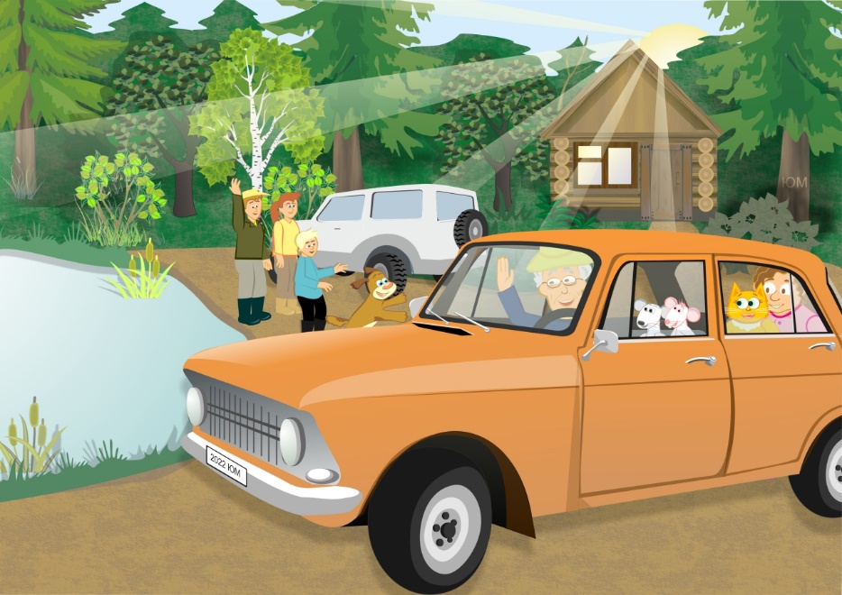 – Ну, ладно, – сказала Марьюшка Николаевна. – Гуляйте здесь и далеко не уходите. А нам надо достать продукты из машины. Уже очень кушать хочется.