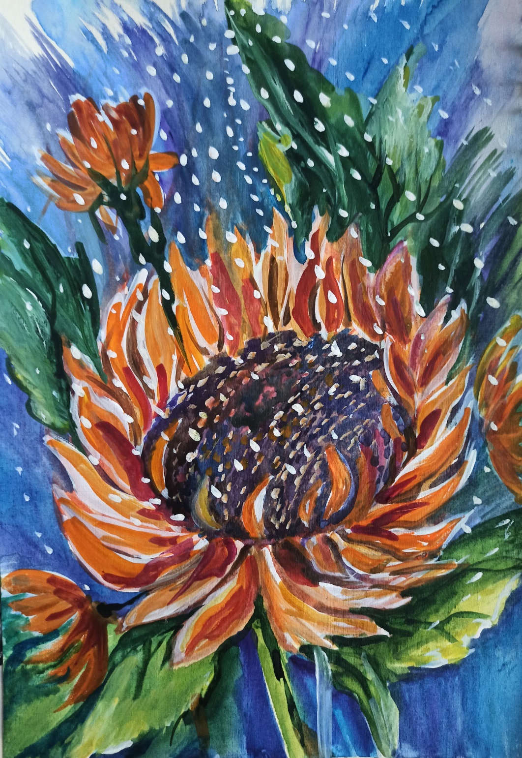 «Солнечный цветок», акварель, бумага, художник Борисова Юлия