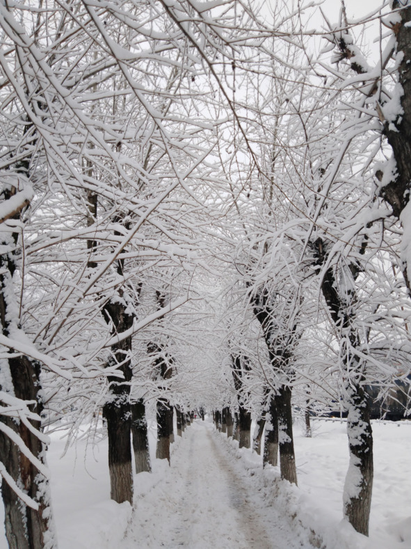 Целую вечность мы идём по аллее, и снег засыпает нас.