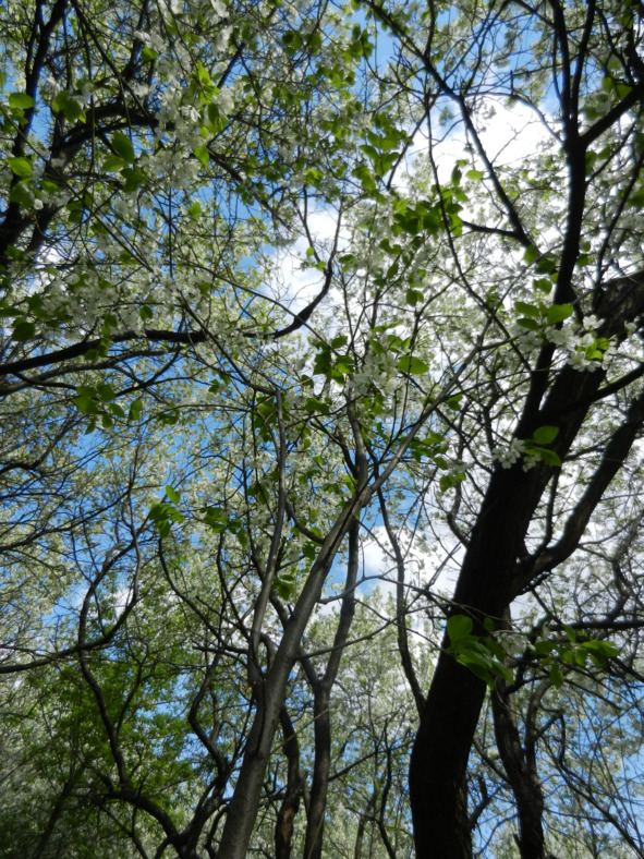 Утренняя прохлада. Васильковое небо. Солнце в зените. Свет струится словно вода. Яблоня в цвету.