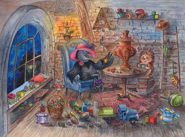 – Можно сказать и так, – с улыбкой ответила Ворона. – Будем считать, что ты у меня в гостях. Ёжик очень обрадовался, ведь он никогда до этого не ходил в гости! Он подошёл к кукольному столику и уселся на стопку старых книг. Ему всё нравилось. Вороне, надо сказать, тоже было по душе общество такого приветливого гостя.