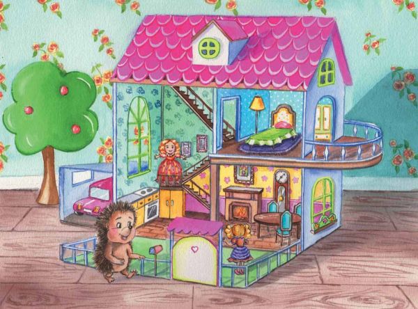 Ёжик бродил по этажам кукольного домика и вежливо здоровался со всеми куклами. Как вдруг услышал в ответ: