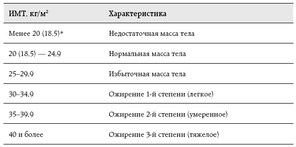 * Нижняя граница нормальной массы тела дана по рекомендациям российских экспертов, в скобках – по рекомендациям экспертов ВОЗ.