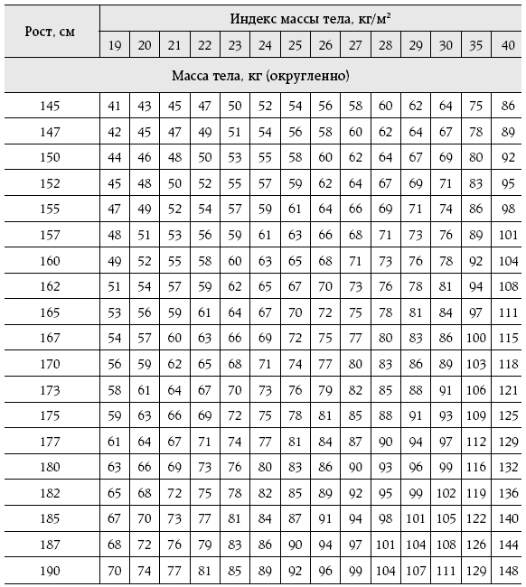 Индексы массы тела в соответствии с ростом и массой тела[2]