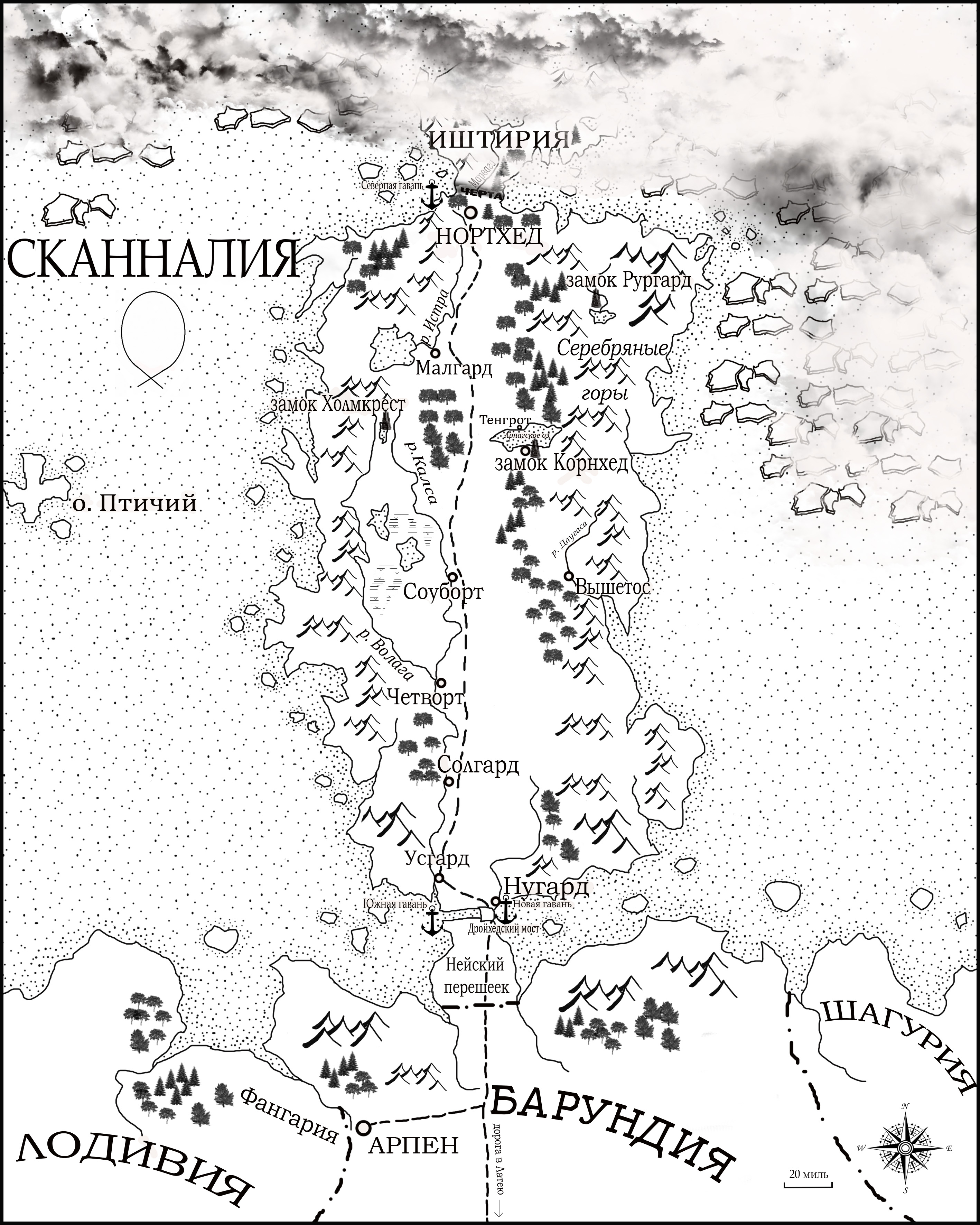 За столом Эйвард и Николь Ривенхеды вместе с вездесущим Теодором шумно обсуждали, как восстановить права прежней веры, негодуя по поводу распространившихся языческих нравов и зарианских церквей. Дайрус собирался отменить часть законов Айвариха, обсудить, как пополнить казну, подготовить свадьбу с Марцией, убрать флот Барундии и Лодивии от гаваней, написать монархам разных стран о событиях в Сканналии… Дел было так много, что изрядно выпивший Дайрус пожаловался ей, как ему всё надоело. Самайя заметила презрительную усмешку Георга, который переглянулся с Валером и предложил предоставить им с новоиспечённым бароном Сиверсом формирование королевской и городской стражи, восстановление работы рудников в Рургарде. Энгус пообещал заняться оживлением торговли, финансов и религиозности, на что Теодор возразил, что вера – дело доминиарха. Дайрус нахмурился и заметил, что по действующему закону не доминиарх глава церкви, а король. Теодор замолчал. Первый день правления Дайруса Первого закончился.