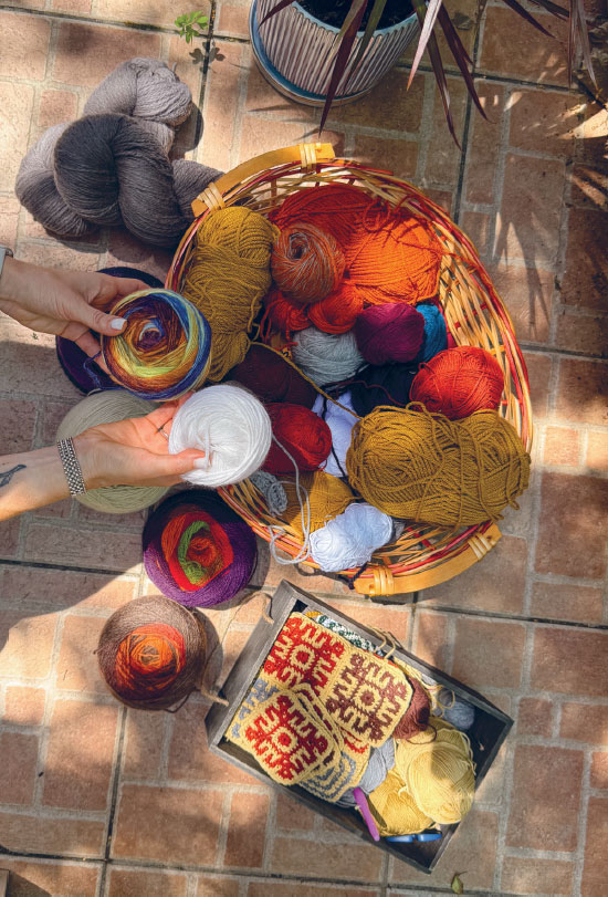 В разделе «Практикум» я покажу, как работала над этой книгой. Мало нарисовать схемы и составить из них дизайны – нужно, как в лаборатории, переложить их на разную пряжу и фактуру, «просочетать» их в разных цветах и понять, какие из них самые выигрышные. Почти девять месяцев я вязала, щупала, пробовала, распускала и снова вязала. Почти сотня образцов разных размеров и фактур – только для того, чтобы показать вам все разнообразие национального орнамента, чтобы максимально, насколько могу, придать вам творческого движения и полета. Что-то меня так увлекало, что превратилось в готовый предмет декора, а что-то, наоборот, осталось лишь образцом. В этом разделе вы увидите, как рос плед ряд за рядом, как раскрывались цвета в пледе-омбре, как я помучилась с одним хитрым центровым узором и как купилась на коварство секционного окрашивания.