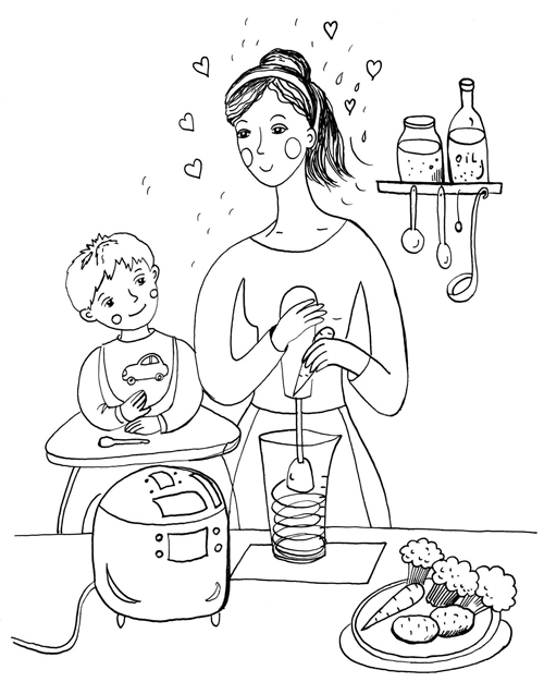 – Варю овощи в пароварке, перетираю в блендере, добавляю немного воды и даю.