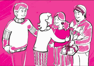 Задание третьеОбнимайте вашего ребенка не менее четырех раз в день (обычные утреннее приветствие и поцелуй на ночь не считаются). Примечание: Неплохо то же делать и по отношению ко взрослым членам семьи.
