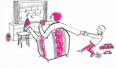 МАТЬ: Что вы! Муж как придет с работы, так сразу на диван и в телевизор…