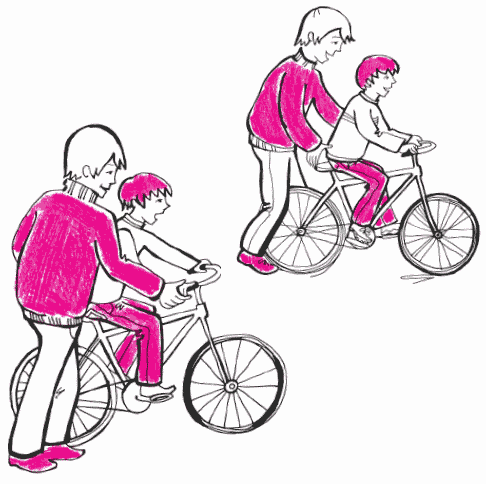 Представьте себе: родитель, держа велосипед за руль и за седло, бегает рядом с ребенком день, второй, третий, неделю… Научится ли тот ездить самостоятельно? Едва ли. Скорее всего, ему вообще надоест это бессмысленное занятие. А уж присутствие взрослого – непременно!