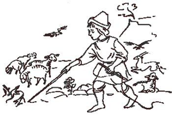 Отец его… хлебопашец и человек простой дал ему под присмотр нескольких овец, и когда он пас их на усадьбе то там, то здесь, будучи побуждаем природной склонностью к искусству рисования, постоянно что-нибудь рисовал на скалах, на земле или на песке, либо с натуры, либо то, что приходило ему в голову… не учился этому ни у кого, кроме как у природы…