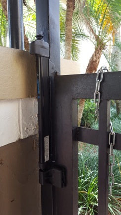 Замок наверху калитки – расположен так, чтобы маленькие дети не смогли открыть.
