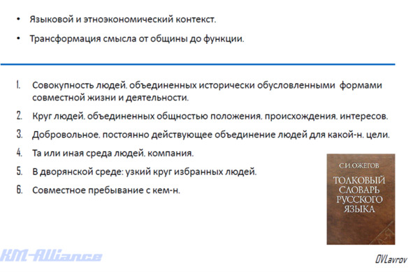 2. Далее хотел бы предложить немного информации о понятиях вокруг сообществ. Это не простая, во многом наследственная смысловая конструкция, и буквально пару слов о том, что в моем исследовании показалось интересным. Вот как определяется «сообщество»: