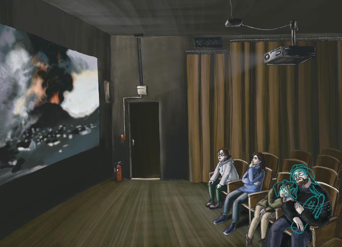 На огромном экране тем временем показывали всякую жуть. Огромная чёрная гора с огоньками огня медленно ползла на деревню, подминая всё на своём пути. Мама сказала, что это магма, которая вырвалась из жерла вулкана.