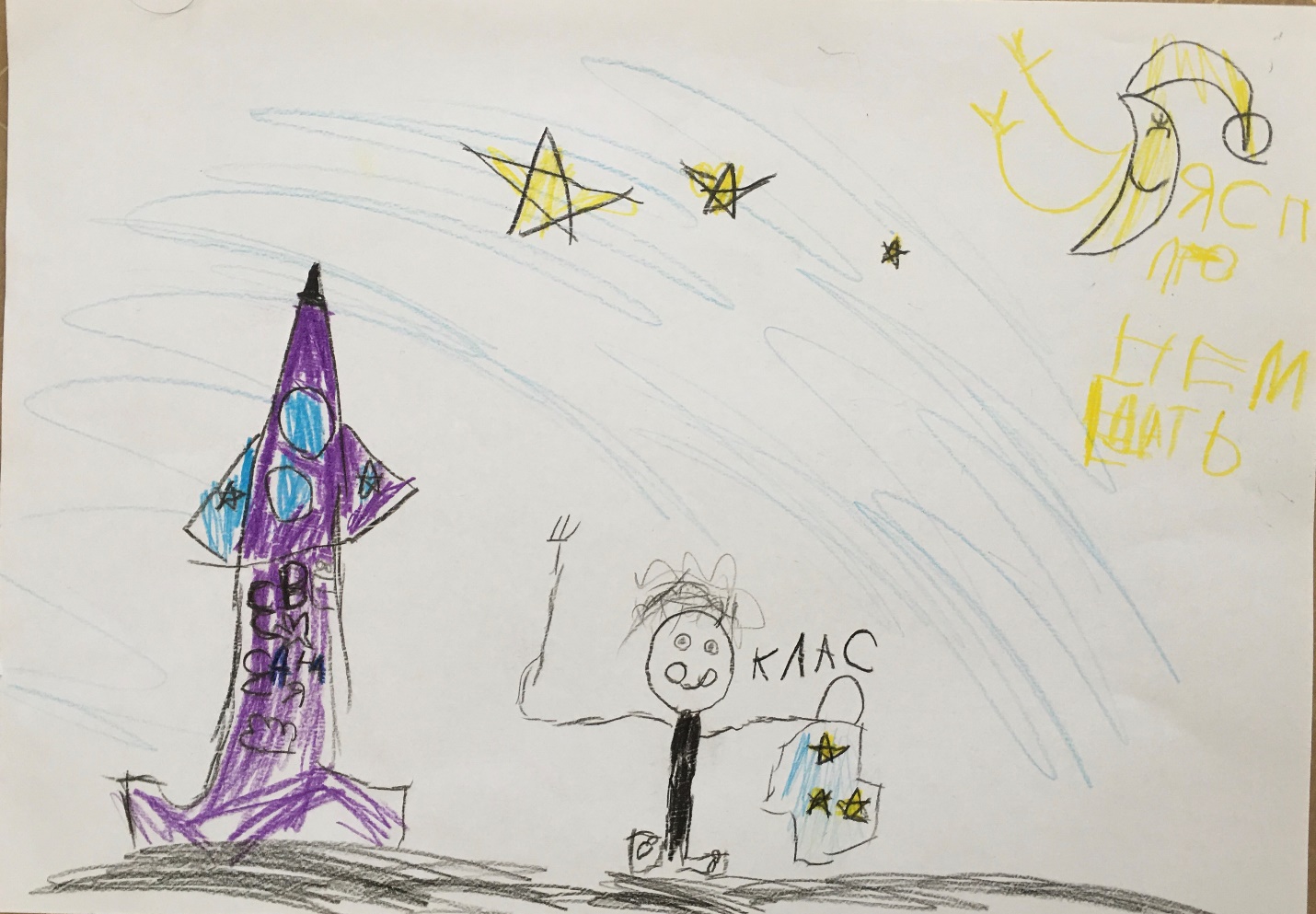 И побежал наш герой на космическую станцию. Там он уговорил космонавтов взять его с собой к звездам. Когда ракета летела в космос, мальчик не верил своим глазам – такое все огромное и необычное было!