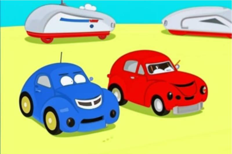 – Ой, как здорово! – обрадовалась голубая машинка и обратилась к красной машинке. – А что думает Красунчик?
