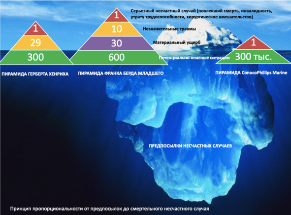 Если наложить на изображение айсберга все три вам известные пирамиды происшествий, то получится следующая картина:
