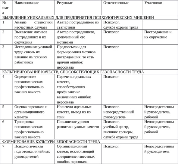 Первые три шага необходимы для того, чтобы определить полный спектр психологических причин ошибок персонала. Для понимания уникальных для конкретного предприятия психологических мишеней.
