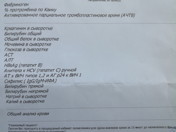 Анализы перед госпитализацией